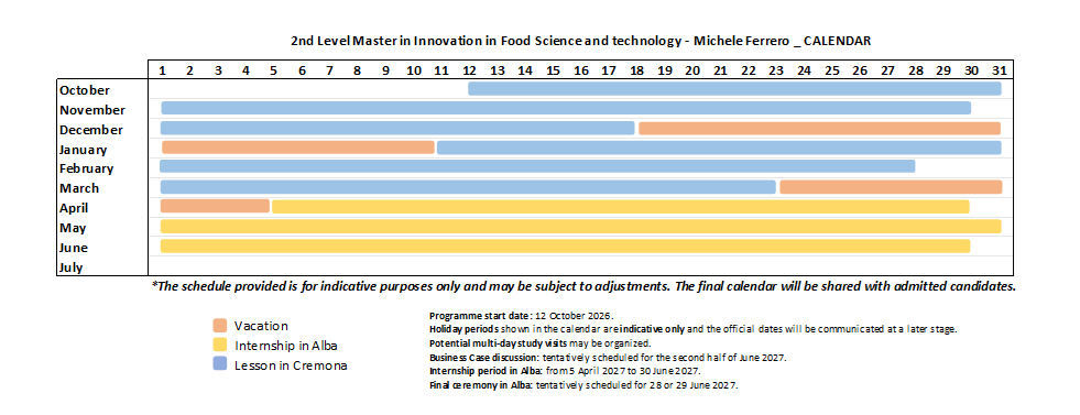 The second-level specializing Master’s program of the Università Cattolica del Sacro Cuore of Cremona, entitled to "Michele Ferrero", aims to train specialists with an interdisciplinary and holistic approach, covering emerging topics related to technological, nutritional, biological, chemical, food law and consumer behaviour aspects in food science.